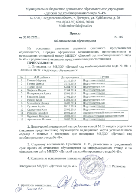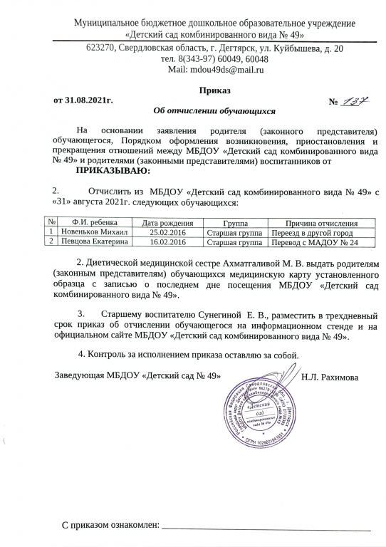 Отчисление обучающихся от 30.06.2022